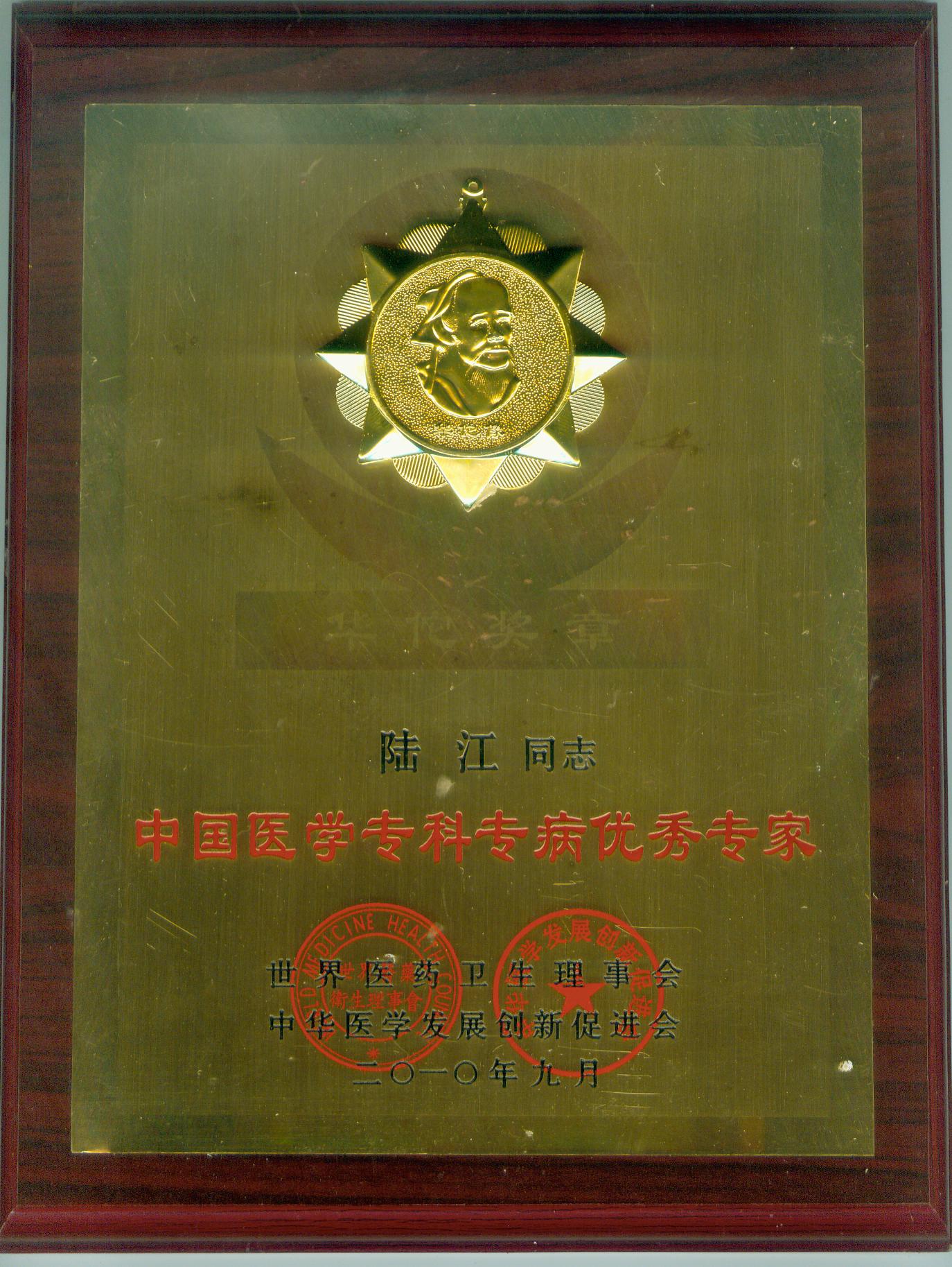 陸江獲得中國醫學??茖2炐銓<沂褎e貢獻獎